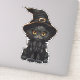 Hand drawn cute Halloween Black Cat wearing a witches hat sticker