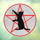Witch Black Cat on Red Pentagram in CircleDesigned by Margie R