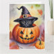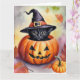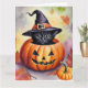 Halloween Black Kitten Witch Hat Pumpkin Card
