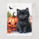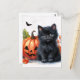 Halloween Black Kitten with Jack-o-lantern Postcard