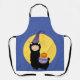 Cute black llama in a purple witch's hat carrying a jack o'lantern. Full yellow moon in the background and a dusty purple-blue background.