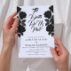 This design feathers a Halloween wedding theme "TILL DEATH DO US PART" with stunning black roses on a white background and elegant script, perfect for couples planning a spooky, elegant gothic wedding ceremony. This card is easily editable with your personal details.