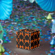 Vibrant repeating pattern of Black and orange diamonds with spooky black skulls. Great for a Halloween Party.