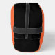 This awesome Halloween cosmetic bag features a spooky black spider with eight hairy legs, yellow eyes with big black pupils and its mouth open showing its fangs. There is orange text that reads “Happy Halloween” and a matching orange background.