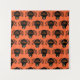 This awesome tapestry features a spooky black spider with eight hairy legs, yellow eyes with big black pupils and its mouth open showing its fangs. There is orange text that reads “Happy Halloween” and a matching orange background.
