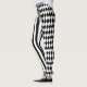 Black and white split patterned leggings, with stripes on one leg and harlequin diamonds on the other