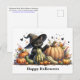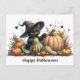Halloween Black Witch's Kitten W/ Pumpkins Gourds Holiday Postcard