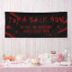 Horror Theme or Vampire Theme Blood Spatter Personalised "Turn Back Now" Welcome Banner for a Scary Halloween Party or Haunted House with custom wording with your family's annual party name. Pick the right size for hanging on the front door, next to your trunk-or-treat display or trick-or-treat table, or use it as a selfie photobooth backdrop, and add it to your long-lasting halloween decor collection and save it to reuse in future years.