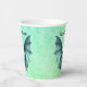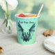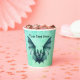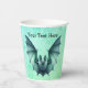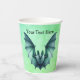 These paper cups are a mix of blues and green with a Halloween flying bat with furry body with a bluish green colour. Customise your text with the templates on the front and back.