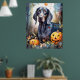 Halloween Bluetick Coonhound With Pumpkins Scary Poster