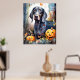 Get your furry friend ready for a howling good time with this adorable dog-inspired Halloween design! Featuring a spooky dog with pumpkins, this design is perfect for pet parents who want to include their four-legged family