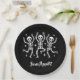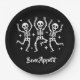 This paper plate is shown in a festive Halloween skeleton Bone Appetit print design.