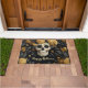 Halloween Bone White Skull with Golden Marigolds Doormat