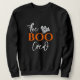 This sweatshirt is shown with a festive Halloween Boo Crew print.