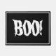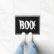 Halloween doormat is shown with a spooky Boo! print on a black background.