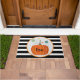 Halloween "Boo" Pumpkin Doormat. This is cute Halloween design in modern black- white stripes.