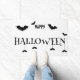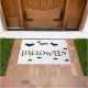 Halloween "Boo" bat Doormat. This is cute Halloween design in modern black- white stripes.