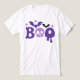 Halloween Boo Skull Bats Modern Typography Tri-Blend Shirt features the text "Boo" in modern purple script typography accented with bats, stars and a skull. Perfect for Halloween parties and celebrations. Created by Evco Studio www.zazzle.com/store/evcostudio