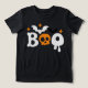 Halloween Boo Skull Bats Modern Typography Tri-Blend Shirt features the text "Boo" in modern orange and white script typography accented with bats, stars and a skull. Perfect for Halloween parties and celebrations. Created by Evco Studio www.zazzle.com/store/evcostudio