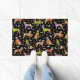 Halloween Border Terrier dogs hold trick-or-treat pumpkins, wear witch hats and sweaters with scattered bats, paws and dog bones.