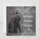 Cool and creepy Halloween wedding reception only invitations with a fantastic Gothic horror skeleton bride and groom. The bride is dressed in a beautiful vintage black, pink and green wedding gown with flowers and butterfly ornaments. The groom is stylish in his top hat, tails and cane. The background is an elegant vintage goth black, grey and white shabby chic collage with ornate white scroll decorations, a dragonfly, antique faded writing and stylish harlequin pattern. On the reverse of these funky goth invites is a glamourous printed black pearls and lace mat with text for you to personalise with your event details. Classy, trendy fun invites. I have matching products in my store. All of the text can be easily customised to meet your needs and you can change the font style, colour and size of font if you desire. If you need any assistance customising your product please contact me through my store and I will be happy to help. Pearl mat by ©Hazel Kinvig-Paul www.design-a-dream.co.uk Please note - all invites on Zazzle have flat printed images.