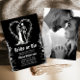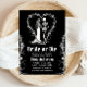 These Bride or Die Halloween bachelorette party invitations are the perfect mix of spooky and chic for your celebration. Featuring a striking skeleton couple design adorned with gothic roses and branches, these invitations capture the elegant, playful, and spirit of a Halloween-themed bachelorette party. The classic black and white colour scheme adds a touch of sophistication while keeping the festive, eerie atmosphere alive. Gothic-style fonts and intricate details make these invitations both captivating and memorable. Printed on high-quality cardstock, they set the tone for an unforgettable night, ensuring your guests are excited about the unique and thrilling theme.
