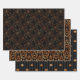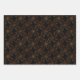 Spooky collection of three creepy pattern wrapping paper sheets featuring spider in brocade pattern, scary pumpkin and spider web.