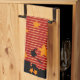 Cast a charming spell over your kitchen with this Halloween tea towel featuring a flying witch silhouette gliding above a sleepy city skyline! Framed in warm ochre and chequerboard red, the design sparkles with golden stars and vintage stripes. The playful customisable “Made By ... ” label seals the spell. Perfect as a seasonal kitchen accent or a spooky-cute gift for Halloween lovers! 🧙♀️🌟