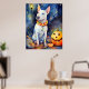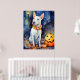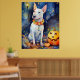 Halloween Bull Terrier With Pumpkins Scary Poster
