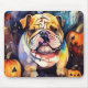 Halloween Bulldog With Pumpkins Scary Mouse Pad
