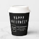 Happy Halloween! One of the holidays of the year to advertise your business or to promote your brand name to customers. By the way, are you looking for paper cup with Halloween greeting for your cafe business? Please see this simple plain white font on black background design paper cup. You might like it. Customise it and use it like a marketing material to advertise your business and to greet your customers this Halloween. To customise this paper cup, upload your business logo, type your business or company name, address and phone number. Please check the appearance after uploading logo and typing texts. If the appearance is pleasing to you, you can place your order now. If you need to resize and move the logo and texts to fit on this paper cup, please change in the design tool. You can also make other changes according to your preference in the design tool such as changing the paper cup colour, font colour and font style. Paper cup with your business name to build brand awareness while your customers enjoy sipping the tasty aromatic coffee that you served to them.