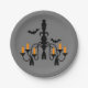 Gothic design of a black chandelier with candles and bats. Stylish gothic halloween design with a black and orange theme.