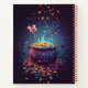 Fruit candy overflows from a black cauldron. A spoon handle with a pink bow sticks out from the heaping sugar. It makes a fun Halloween gift for any candy lover.