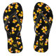 These Halloween flip flops feature a randomly arranged pattern of yellow, orange and white candy corn pieces on a black background - monogram is customisable - by katz_d_zynes | part of katzdzynes' Halloween candy corn collection >>> https://www.zazzle.com/collections/119793208103154271