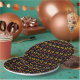 A plate with a colourful pattern of Halloween candy corn in yellow and orange on black. Customise It to add your name or message, change background colours, even save your design for later.