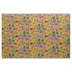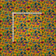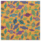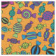 These colourful Halloween hard candies in purple, turquoise, black and green will make a sweet fabric for DIY Halloween projects. Background is orange with circles.