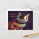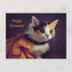 Halloween. Cat in pumpkin costume. Postcard