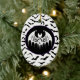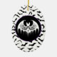 Halloween party ceramic ornament is shown with a haunted bat print.
