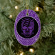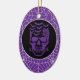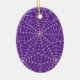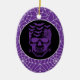 Halloween party ceramic ornament is shown with a spooky skull print on a spiderweb purple colour background.