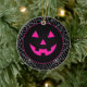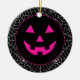 Halloween party ceramic ornament is shown with a pumpkin face.