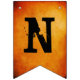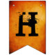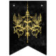 A silhouette of an elegant gold Halloween chandelier, printed with a faux-glitter look, is set against a shadowy, distressed black background. The remaining banner sections are in warm shades of gold and orange also with a grunge look. The creepy chandelier appears classic at first glance, but closer inspection will reveal that it is also comprised of various ghoulish components such as bones, a skull and a bat. The lettering reads "Happy Halloween" in a creepy black typeface, but can be personalised with your own message if desired, as all design elements are unlocked so you can change them to suit your needs. Please check my shop for matching envelopes and other coordinating party supplies!