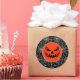 Halloween sticker is shown with a festive spider webs and scary pumpkin face print.