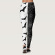 Complete your Halloween outfit with these black and white split patterned leggings. One leg is covered in spider cobwebs, the other features flying bats