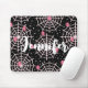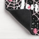 A mouse pad with a cute seamless pattern with white cobwebs and pink spiders.