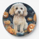 Halloween Cockapoo With Pumpkins Scary Paper Plate
