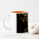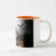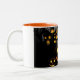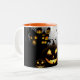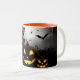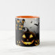 Coffee mug shown in a Halloween haunted pumpkins print.