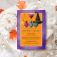Summon your coven and stir up some spooky fun—this Halloween Costumes and Cocktails party invitation is a potion of playful elegance and eerie charm. Set against a rich purple watercolor background, the design features a trio of whimsical elixir vials, a sweeping witch’s broom, and a classic pointed hat, all painted in loose, expressive strokes. A blood-red cocktail with a floating eyeball adds a dash of frightful flair, while the orange text banner pops with festive warmth, guiding guests to the details of your haunted soirée. Perfect for witches, warlocks, and stylish spirits alike, it invites guests to dress to impress and sip sinister elixirs under the moonlight. Whether you're hosting a potion-themed soirée or a costume contest with cocktails, this invite conjures the perfect blend of charm and chills.