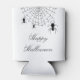 Happy Halloween party can cooler, with a black and white creepy spiders and spider web design. With black script lettering, you can add your own text. A cute addition to your next Halloween celebration.