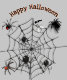 Big ugly spiders climb in there web and it seems they caught their next victim. Poor fly is wrapped in webbing screaming for help. Happy Halloween black and orange text.