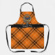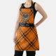 Halloween crest badge with flying bat surrounded by a strap and buckle over tartan background. Custom text.